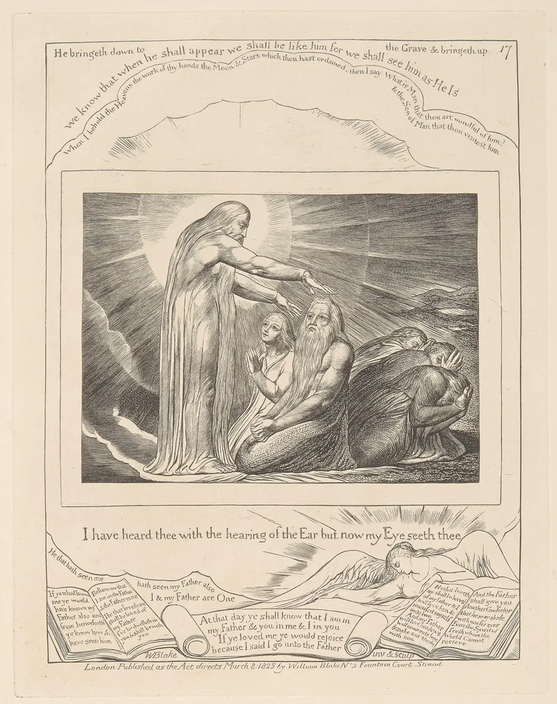 Public domain via Wikimedia Commons. William Blake (1757–1827), Illustrations of the Book of Job (engraved 1826) and related biblical paintings, tempera prints, and watercolors.