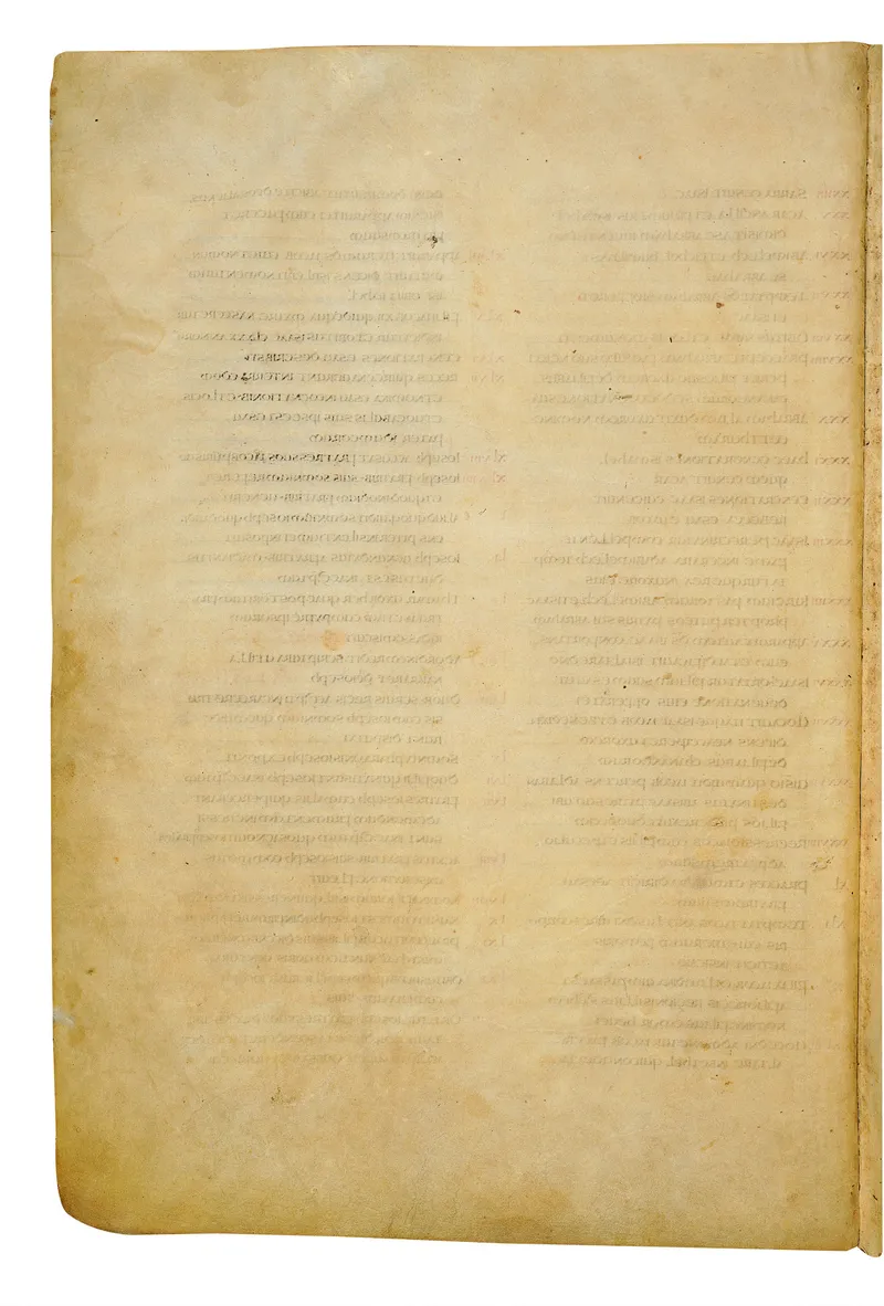 Folio of the Codex Amiatinus, the oldest surviving complete Latin Vulgate manuscript, made c. 700 AD at the twin Northumbrian monasteries of Monkwearmouth and Jarrow under Abbot Ceolfrith. Approximately corresponds to Genesis 10 in Vulgate book order. The page shows the actual eighth-century insular-uncial script as it would have been read by the monks who produced it for Pope Gregory II.