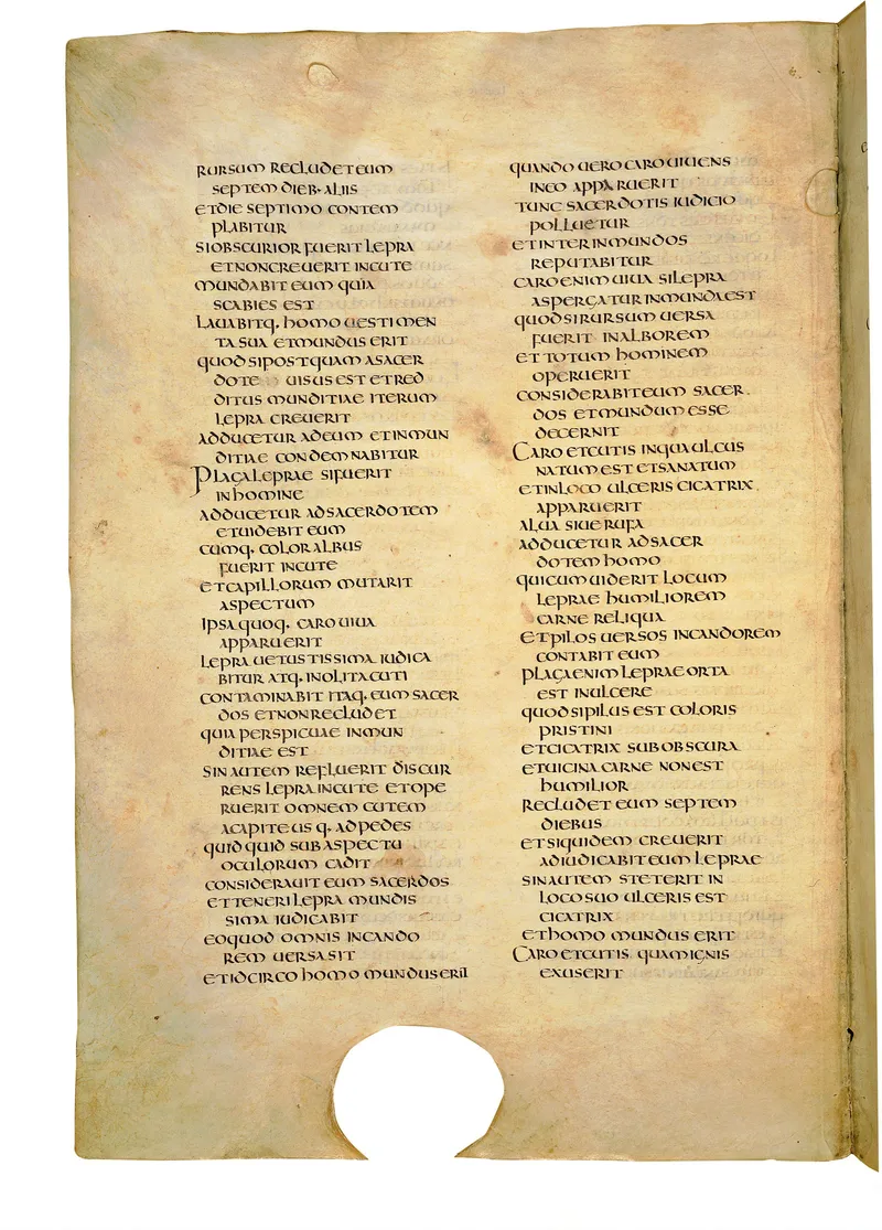 Folio of the Codex Amiatinus, the oldest surviving complete Latin Vulgate manuscript, made c. 700 AD at the twin Northumbrian monasteries of Monkwearmouth and Jarrow under Abbot Ceolfrith. Approximately corresponds to Numbers 3 in Vulgate book order. The page shows the actual eighth-century insular-uncial script as it would have been read by the monks who produced it for Pope Gregory II.