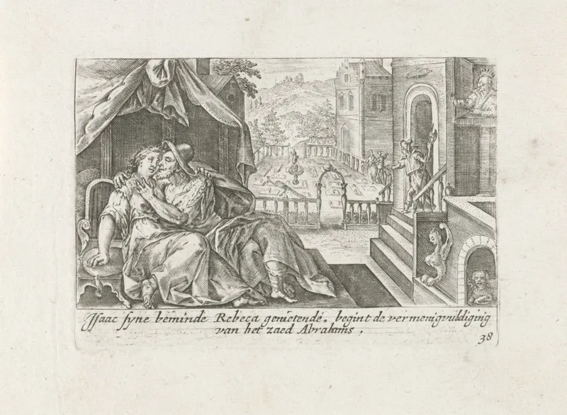 Abimelech bespiedt Isaak en Rebekka