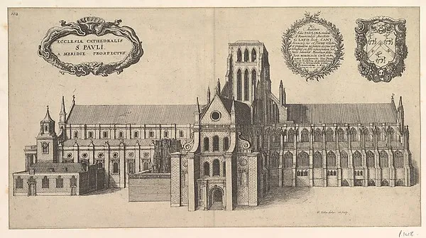 Saint Paul's, South side (Ecclesiae Cathedralis St. Pauli, A Meridi Prospectus), from "The History of St. Paul's Cathedral in London"