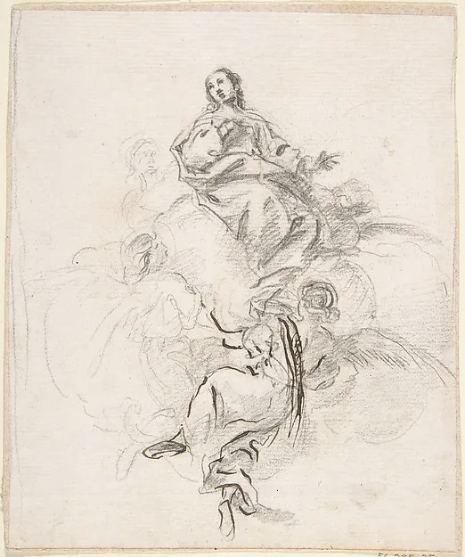 Virgin of the Immaculate Conception Seated on Clouds, Supported by Four Angels