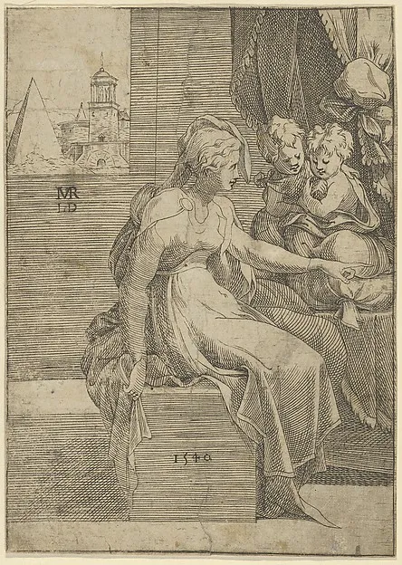 Seated woman with two children (Virgin with Christ and St John the Baptist?)