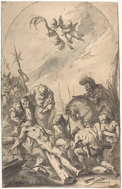 The Martyrdom of Saint Andrew (recto); Back of a Woman Wearing a Long Dress with a Ruff (verso)
