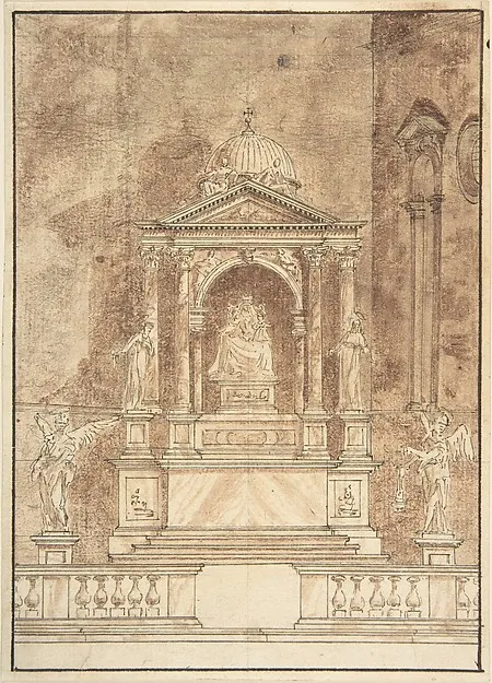 Design for an Altar: Virgin and Child Flanked by Saints, Two Angels in the Left and Right Foreground