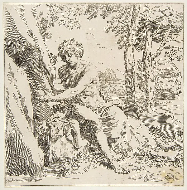 Saint John the Baptist in the desert, copy in reverse after Cantarini