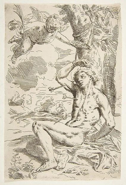 Saint Sebastian pierced with arrows and tied to a tree, copy after Cantarini