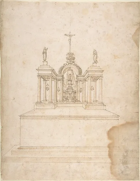 Design for a Tabernacle Surmounted by Christ on the Cross and Praying Figures (the Virgin and Saint John?)