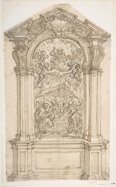 Design for an Altar with a Painting of the Adoration of the Shepherds and God the Father Above