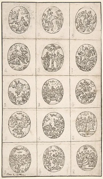 15 Oval Scenes From the Life of Christ and a Scene of a Saint Adoring the Holy Cross