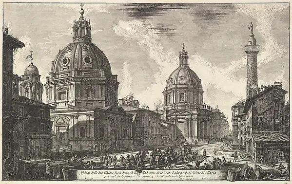 Two churches near Trajan's column, S. Maria di Loreto and Santissimo Nome di Maria (Veduta delle due chiesa, l'una detta della Madonna di Loreto, l'altra del nome di Maria, presso la Colonna Trajana)