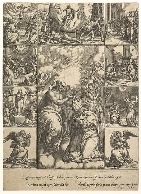 The Coronation of the Virgin; surrounded by nine vignettes with scenes from the life of Christ and the Virgin