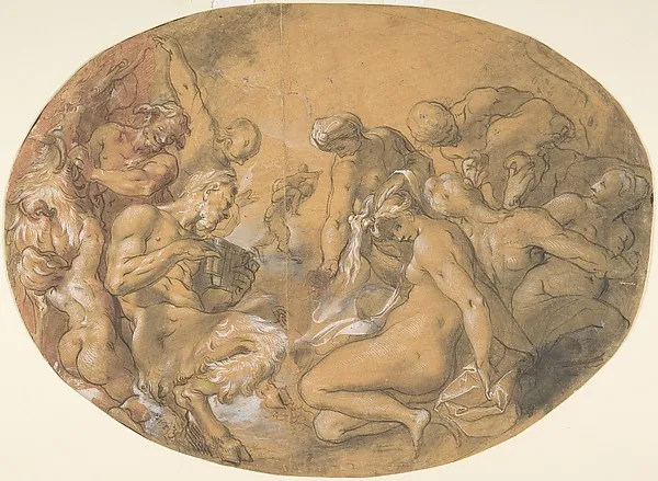 Satyrs and Nymphs; verso: partial counterproof of Heintz's "Studies for the Flight into Egypt" in The Courtauld Gallery, London