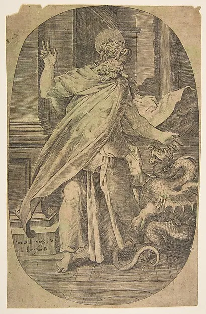 St Paul overcoming the viper, within an architectual setting, an oval composition
