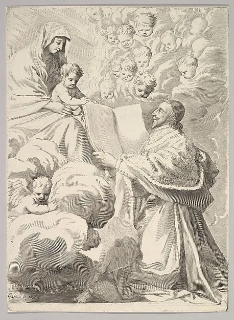 Cardinal Richelieu, Kneeling, Presents His Book to the Virgin and Child