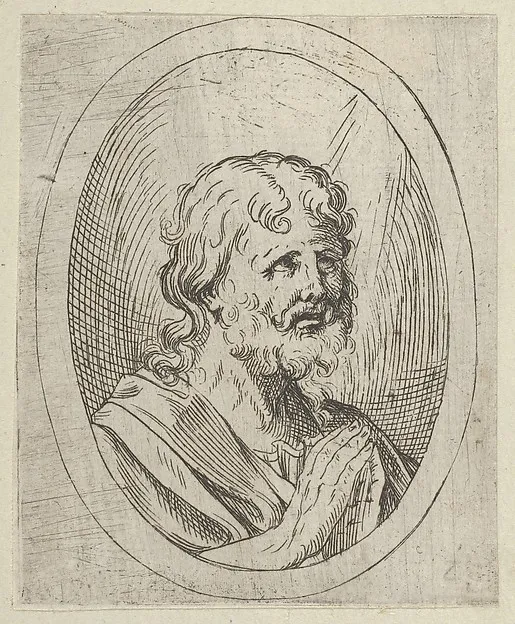 An apostle raising his eyes in prayer, in an oval frame, from "Christ, the Virgin, and Thirteen Apostles"