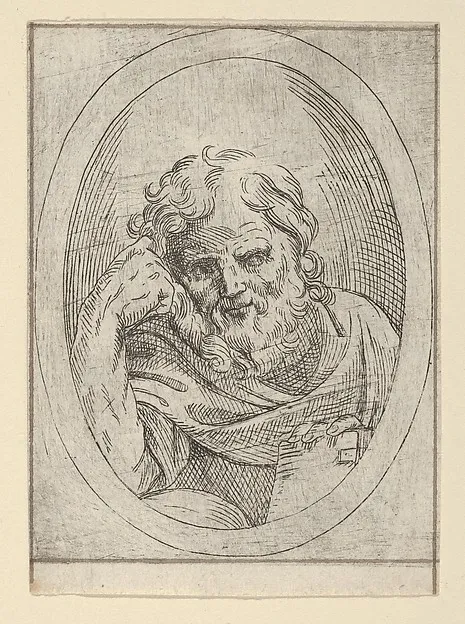 An apostle resting his head on his right hand and holding a book, in an oval frame, from "Christ, the Virgin, and Thirteen Apostles"