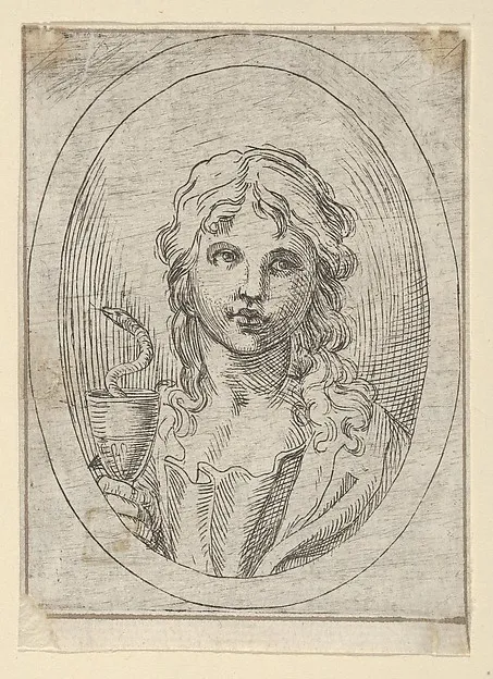 Saint John the Evangelist holding a goblet with a snake emerging from it, from "Christ, the Virgin, and Thirteen Apostles"