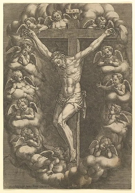 Christ crucified surrounded by mourning angels