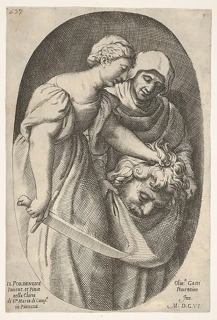 Judith with the head of Holofernes in her left hand and a sword in her right hand, accompanied by a female attendant, from a series of four Old Testament subjects
