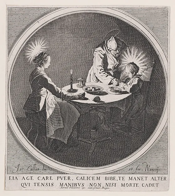 Le Benedicite, estampe appelée aussi La Sainte Famille a Table et St. Joseph Faisant Boire L'Enfant Jésus (The Grace, also called The Holy Family at the Table and St. Joseph Giving the Christ Child a Drink)