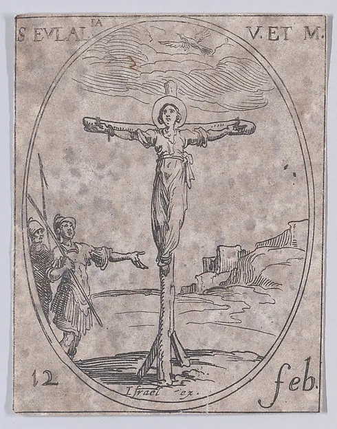 Ste. Eulalie, vierge et martyre (St. Eulalia, Virgin and Martyr), February 12th, from "Les Images De Tous Les Saincts et Saintes de L'Année" (Images of All of the Saints and Religious Events of the Year)