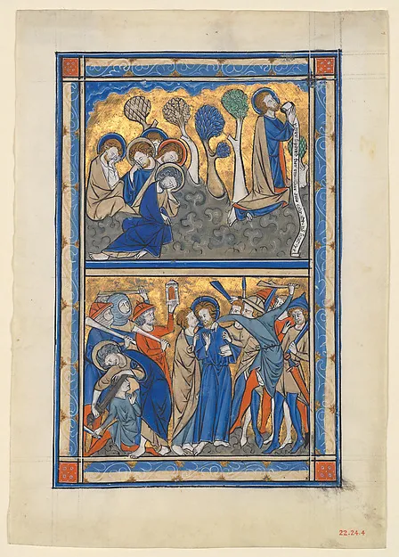 Manuscript Leaf with the Agony in the Garden and Betrayal of Christ, from a Royal Psalter