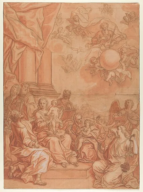 The Virgin and Child with Saints and Angels, and God the Father in the Sky