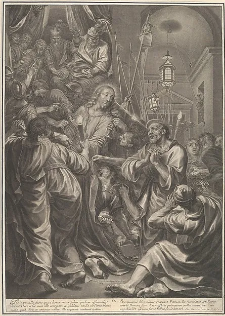Christ Before Caiaphas looks to St. Peter, who Denies Him, from The Passion of Christ, plate 9