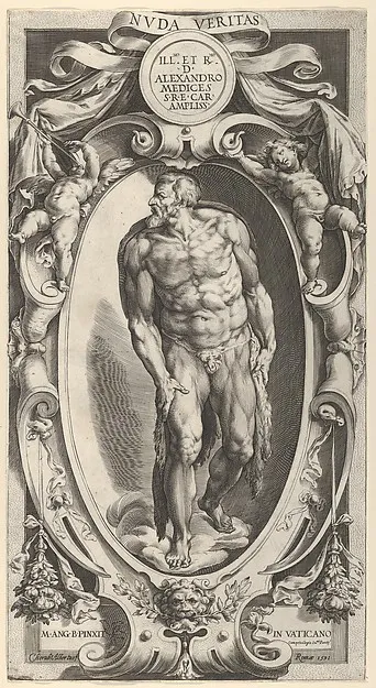 Saint John the Baptist in a decorative border, after Michelangelo's 'The Last Judgment' fresco in the Sistine Chapel