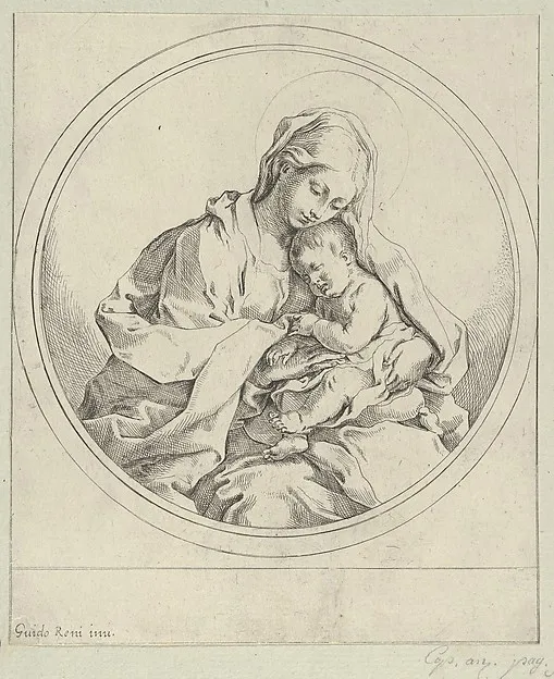 The Virgin holding the infant Christ, a circular composition, after Reni