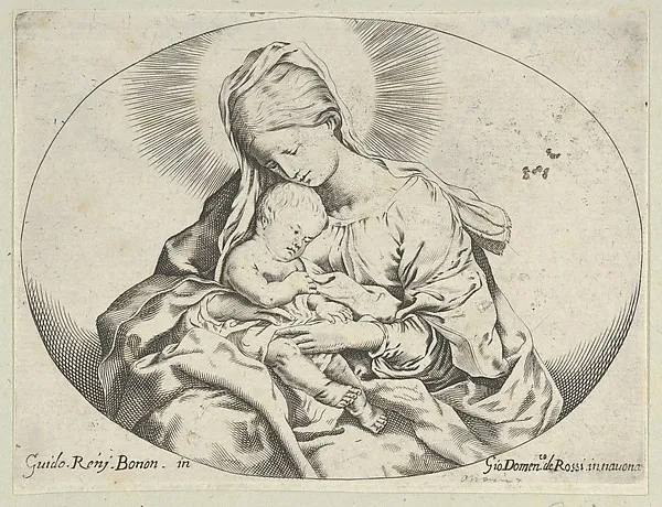 The Virgin holding the infant Christ, an oval composition, after Reni