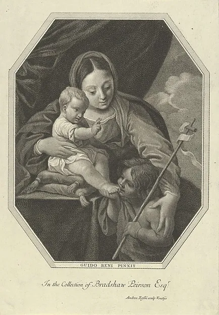 The Virgin with the infant Christ seated on a cushion and the young Saint John the Baptist kissing his foot, an octagonal composition, after Reni