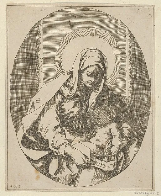 The Virgin holding the infant Christ on her lap, an oval composition, after Reni
