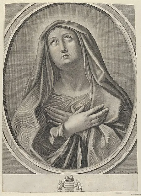 The Virgin with arms crossed over her chest, looking up to the left, in an oval frame, after Reni