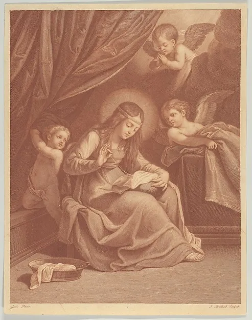 The Virgin sewing, two angels and a putto surrounding her, after Reni