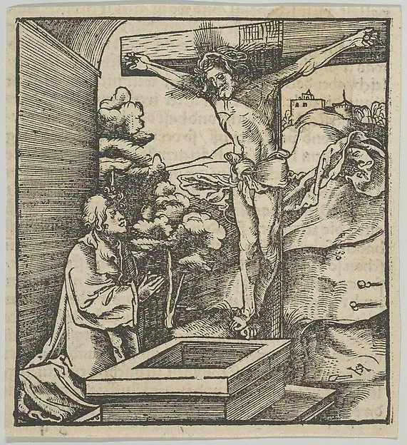 A Man Praying before a Crucifix, from Hymmelwagen auff dem, wer wol lebt...