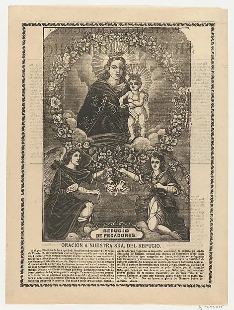 Broadsheet relating to Our Lady of Refuge with prayer