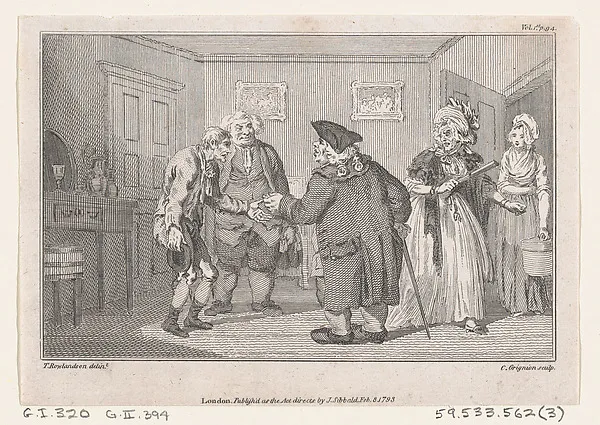 The First Meeting of Matthew Bramble and Humphry Clinker, an illustration from Tobias Smollett's "The Expedition of Humphry Clinker" (London, 1793), Vol. 1. 1793
