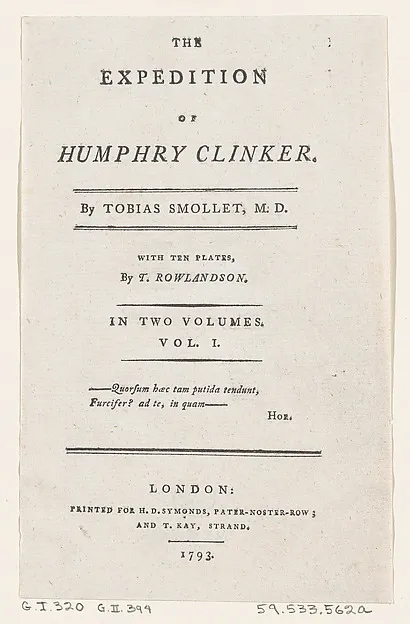 Title Page, from Tobias Smollett's "The Expedition of Humphry Clinker" (London, 1793), Vol. 1