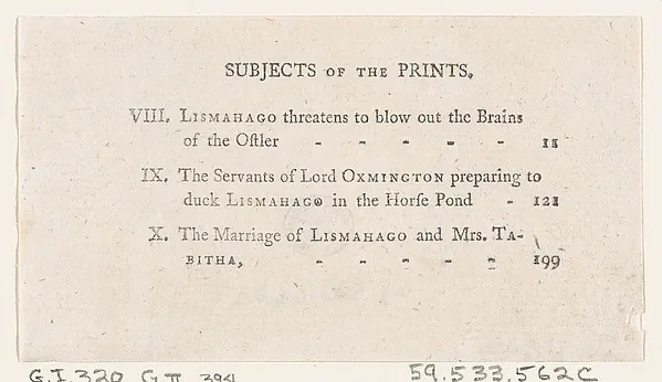 List of Plates VIII-X, from Tobias Smollett's "The Expedition of Humphry Clinker" (London, 1793), Vol. 1