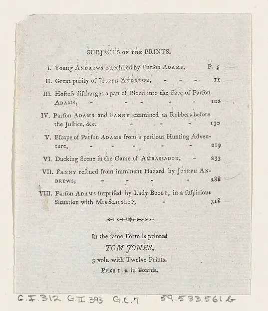 Table of Contents: "The Adventures of Joseph Andrews, and his friend Mr. Abraham Adams"