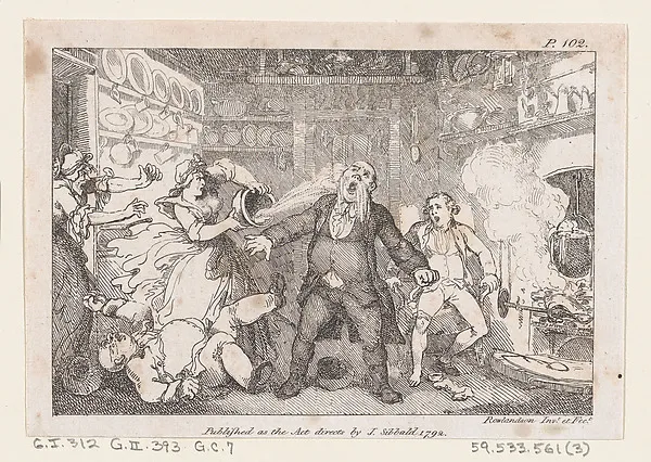 Hostess Discharges a Pan of Blood into the Face of Parson Andrews, from "The Adventures of Joseph Andrews, and his friend Mr. Abraham Adams"