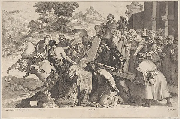 Road to Calvary, at center Veronica kneels before Christ and holding the Sudarium