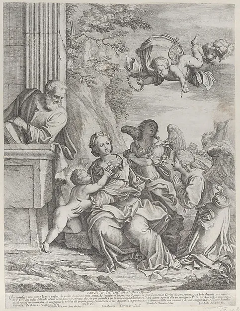 The Holy Family with angels at right and overhead