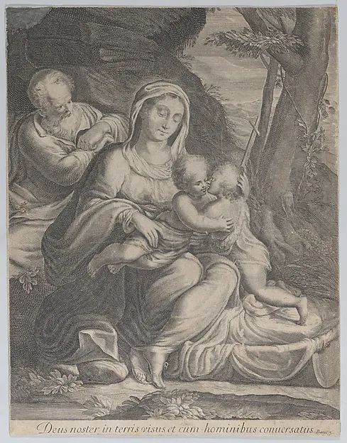 The Holy Family with infant Saint John the Baptist kneeling at right