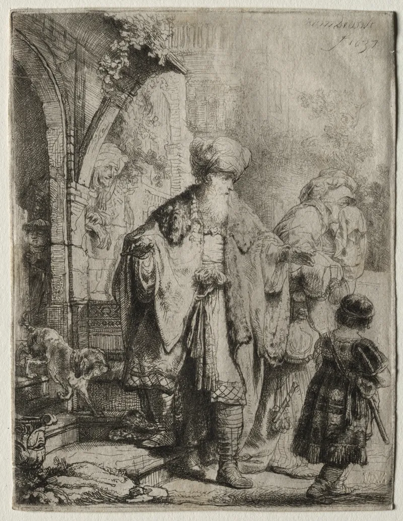 Rembrandt Harmenszoon van Rijn was a Dutch Golden Age painter and printmaker whose biblical works — in oil, panel, and etching — remain among the most psychologically searching treatments of Scripture in Western art.