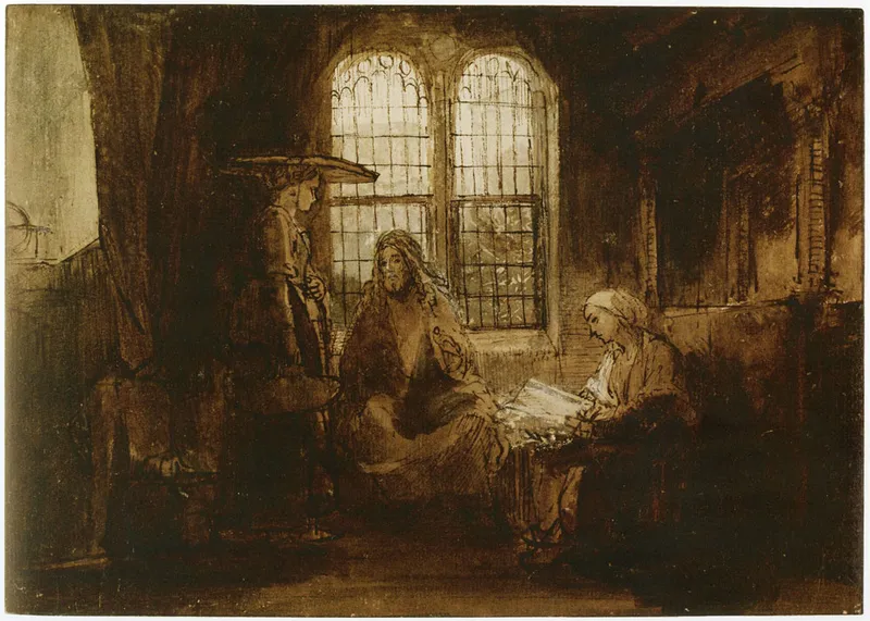 Rembrandt Harmenszoon van Rijn was a Dutch Golden Age painter and printmaker whose biblical works — in oil, panel, and etching — remain among the most psychologically searching treatments of Scripture in Western art.