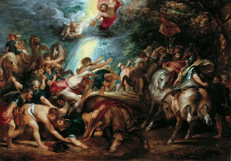 Saul is thrown from his horse on the road to Damascus in a great flash of light; the risen Christ appears in the clouds. LIECHTENSTEIN. The Princely Collections, Vienna.