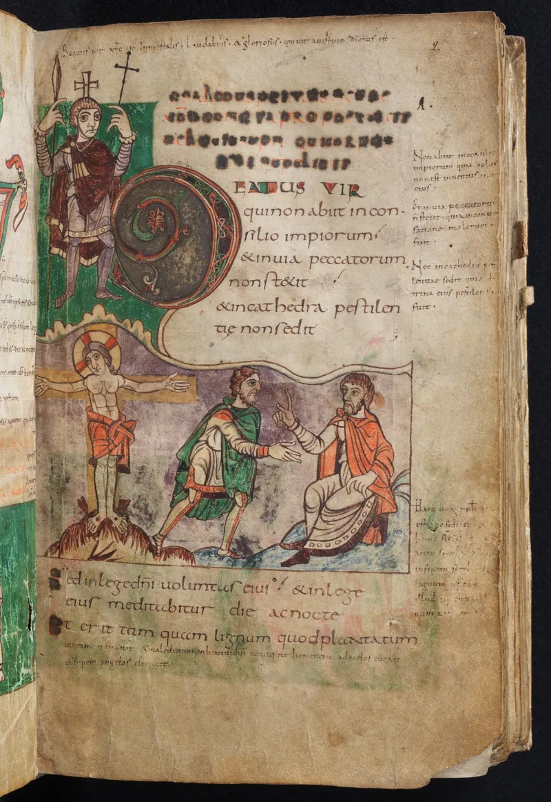 Stuttgart Psalter, folio 2r (incipit)